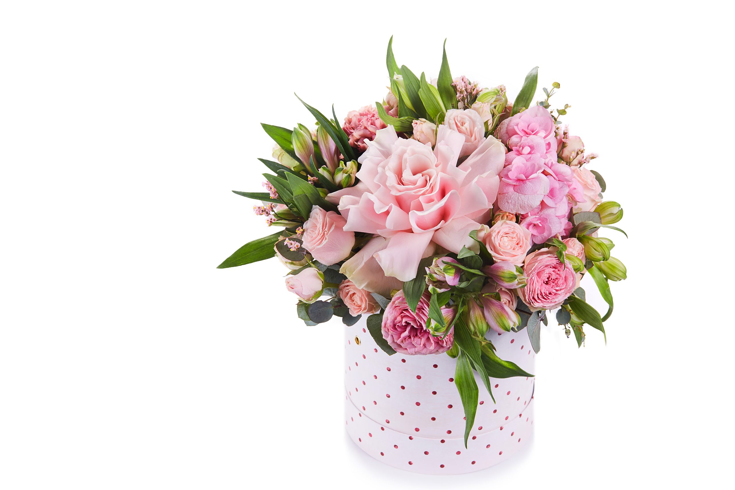 Celebrate the new addition of a new little sweetheart with endearing shades of pink and greens through a mix of Roses, Carnations and Alstromeria in a container.